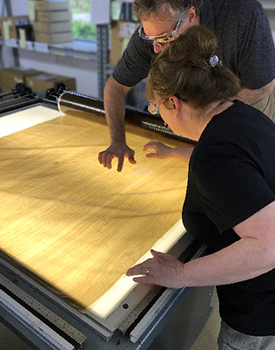 Though there are hundreds of available patterns, customers have the option to create unique, custom designs as well. Typically, this involves designing the pattern, finalizing the artwork for print and physically producing the metal cylinder from which the film will be printed. A detailed overview is below: